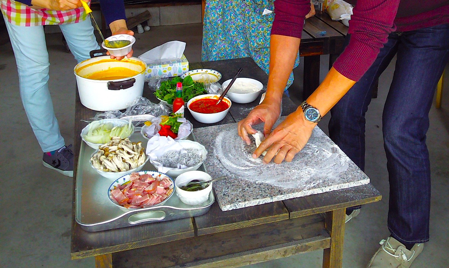 塙町唯一の農家民宿(四季彩菜工房)で味わうピザ焼き体験のほか、羽釜ご飯など素朴な里山暮らしを楽しめます。